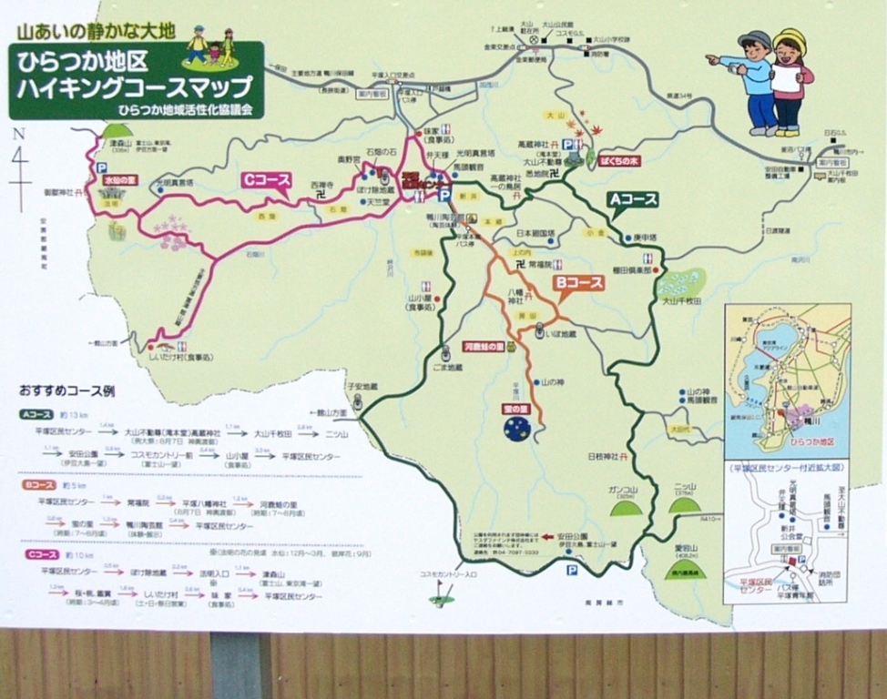 JR安房鴨川駅東口側・鴨川日東バスの路線バスにて約40分 館山自動車道鋸南保田IC~県道34号線(長狭街道)を鴨川方面へ。 平塚交差点を曲がり、川を渡ったエリアがひらつかです。 |