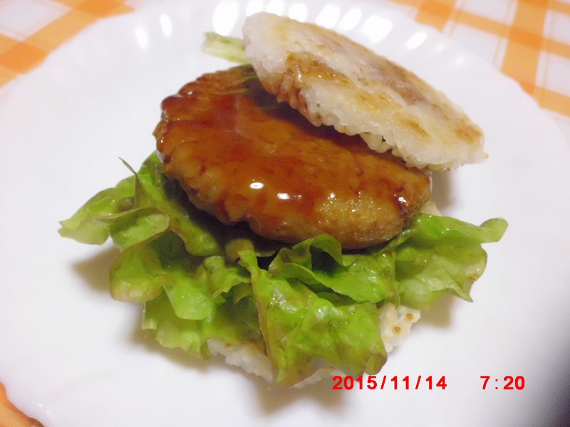 サラダれんこんバーグを鴨川長狭米こしひかりを使いバウンズにして、美味しく召し上がっていただけます。