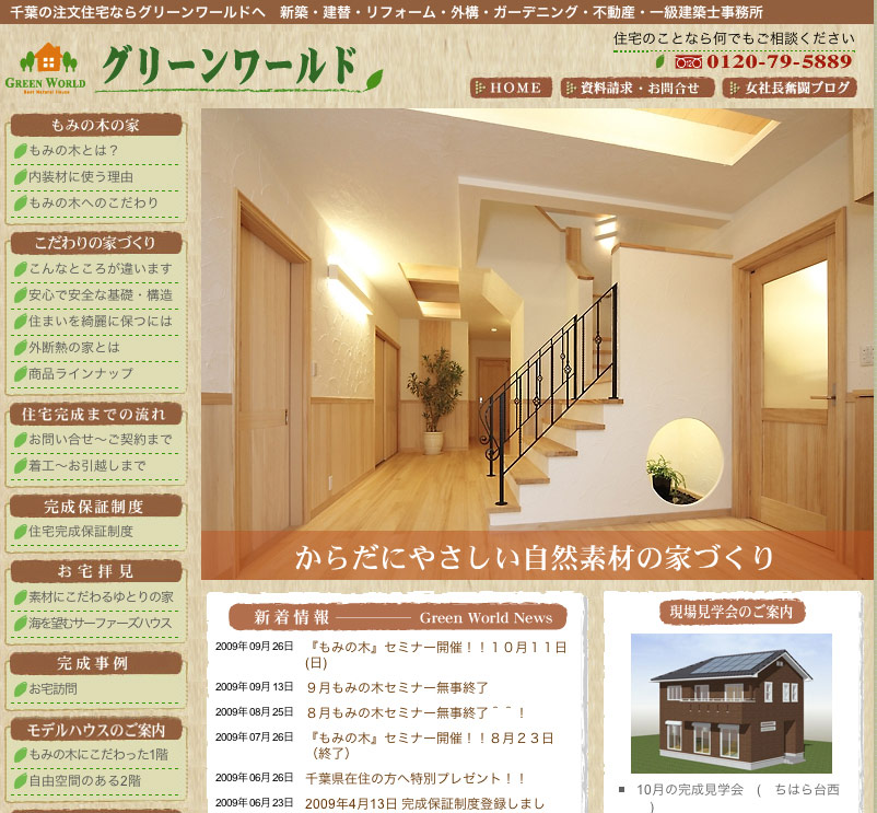自然の木にこだわり、施工事例も自社更新できます。