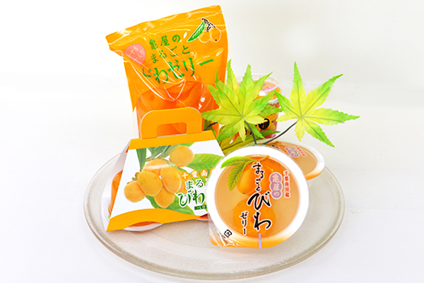 皮をむいたまるごとびわを、まろやかなゼリーでとじ込めました。一口タイプからファミリータイプと各種取り揃えました。