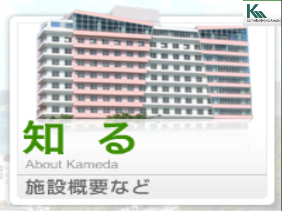 【亀田メディカルセンター】は亀田総合病院を中心とした亀田クリニック、亀田リハビリテーション病院などの医療サービス施設の総称です。 千葉県南部に位置し基幹病院としての役割を担う当センターには診療科目31科、1日の平均外来患者数3000名と近年では国内の様々地域また海外からも患者さまが来院されます。 【亀田メディカルセンター】は外来診療から急性期の治療(入院)そして急性期の治療を終えた回復期のリハビリまで患者さまお一人お一人に合った質の高い医療を提供することにより患者さまのQOL(Quality of Life :生活の質)の向上を目指しています。