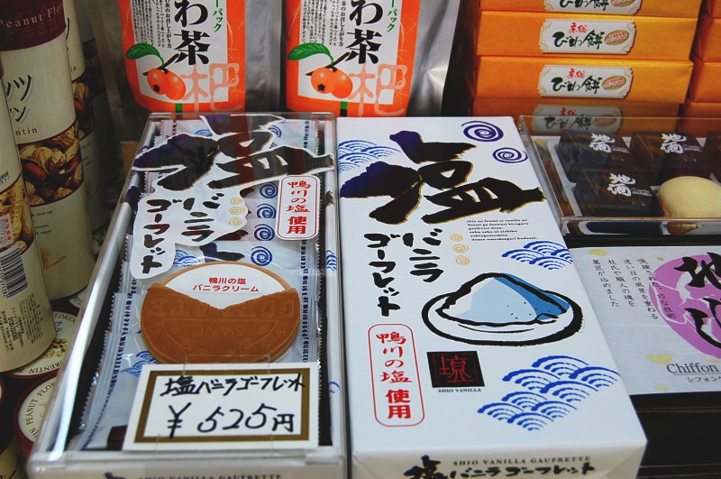 かまたの鯛せんべいをはじめ、さいぶのひじきや高梨のおかき、そしてそして、房総限定びわキティや落花生の殻に入っちゃったスティッチ等、レアなお土産もあります。また、店長の気さくな人柄に惹かれ、鴨川に来た時のお土産は必ずここで買う、というリピーターさんも多いお店です。