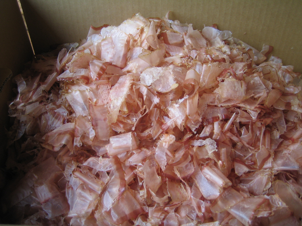 枕崎産の本節を1~2年枯らした「枯れ本節」を使用し、削る前に割って脂肪の少ない中身の赤い上物だけを選別して削った大変貴重な削り節です。