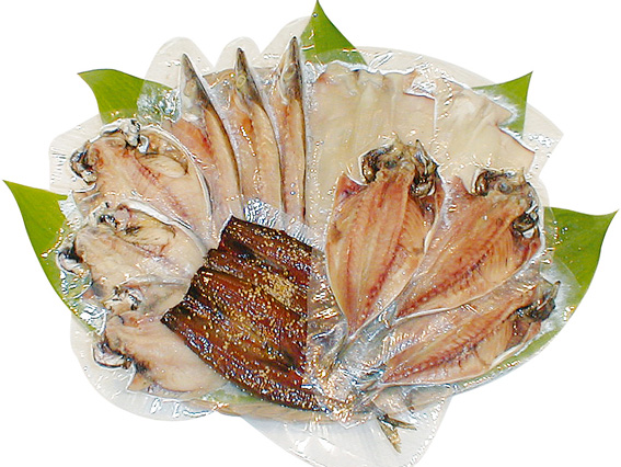 当店のひものは、厳選した魚を、一枚一枚、丁寧にひらき、「干したてパック」にてお届けしております。冷蔵で10日間、冷凍で3ヶ月と長期の保存が可能な上、空気にふれないため、酸化しにくく衛生的です。どれも、当店が自身を持ってお勧めできる逸品です。干したて製造直売の味を是非ご賞味下さい。
