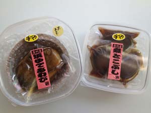 ひもの、浜ゆでアワビ、トコブシ姿煮。特にウツボの干物など自信作揃い!