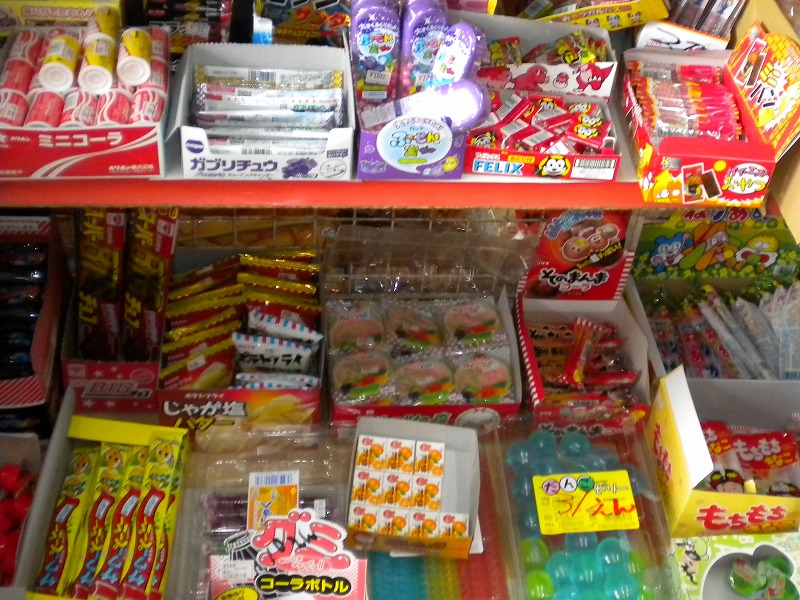 昔懐かしの駄菓子たちです!一つ一つの値段がお手頃で、お子様、大人を問わず楽しめるお菓子ですね!