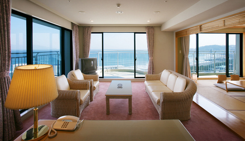 雁行型のデザインによってどの客室からも見事な眺望をご覧いただけます。