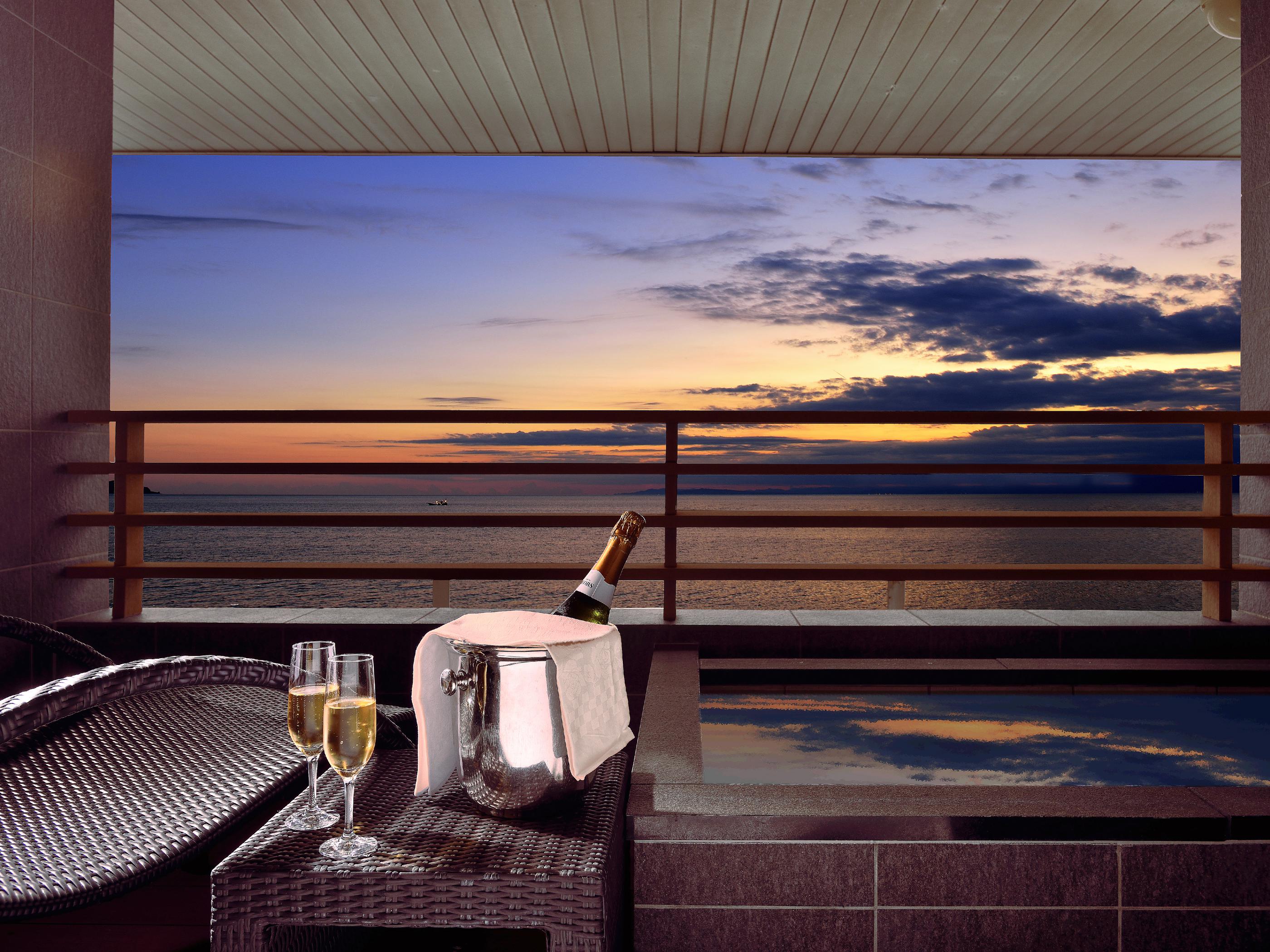 お部屋の露天風呂で、贅沢な時間を何度でも好きなだけご堪能いただけます。日の出から夜景まで、絶景に癒される至福の時間を。