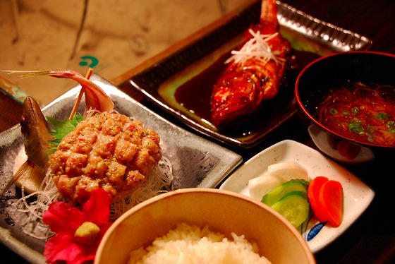 房州の郷土料理のなめろうと煮魚の定食、もちろんご飯は長狭米です。シンプルなだけ丁寧に作っております。