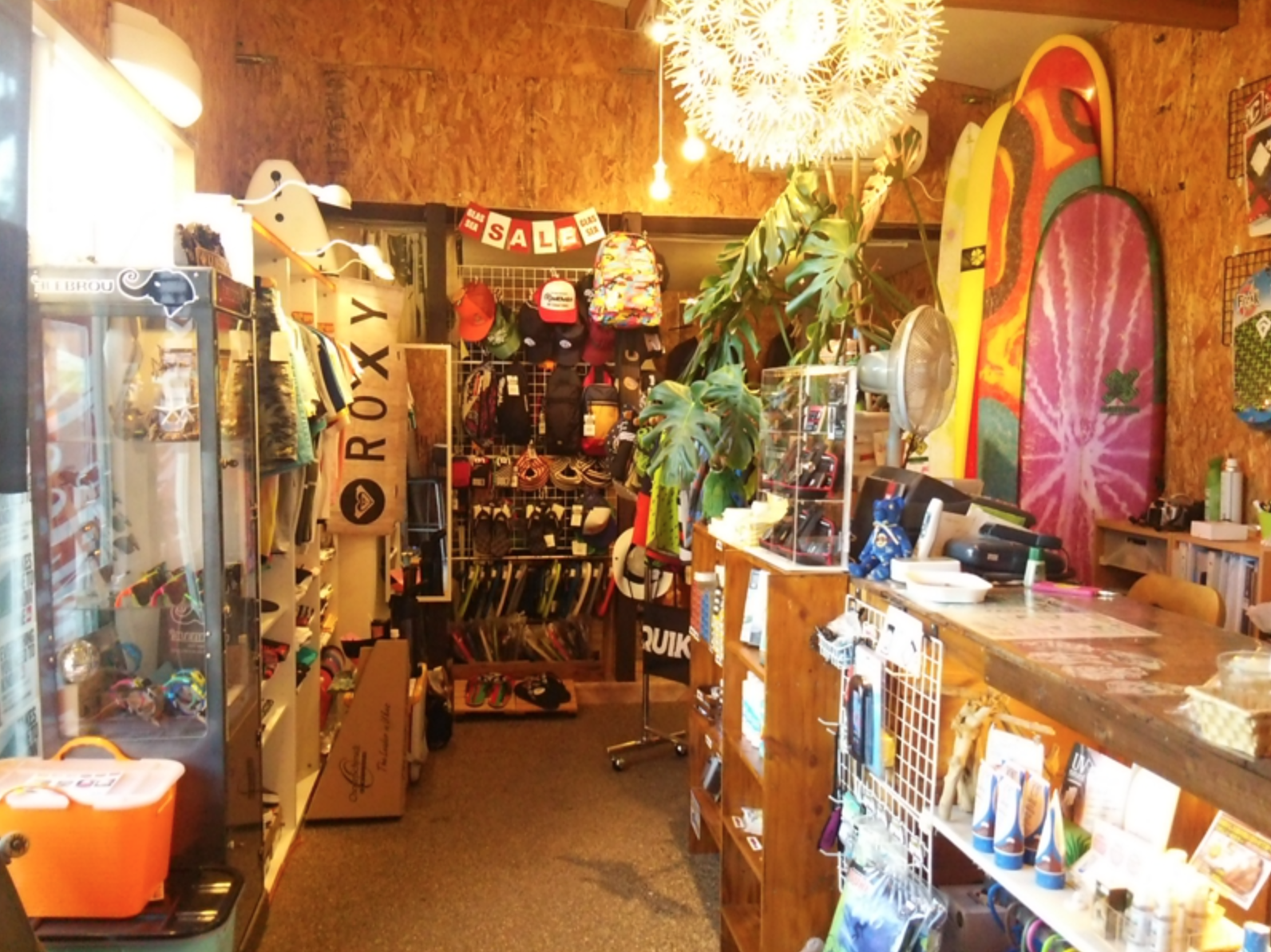 サーフィンにおいてのすべての道具、洋服・サングラス・時計などファッション関連の販売… さらにソフトクリームやコーヒーなどなど お買い物だけでなくお店のくつろぎスペースでゆっくり満喫していってください。