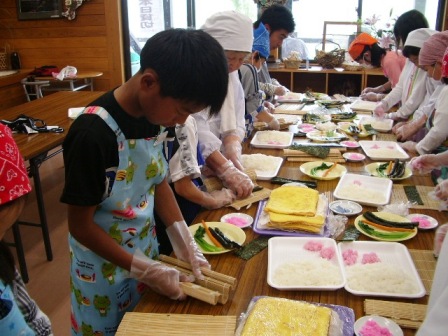 -rice planting (late April to eraly May)-harvesting (late August to early September)-cooking traditional rice menu(whole year)
